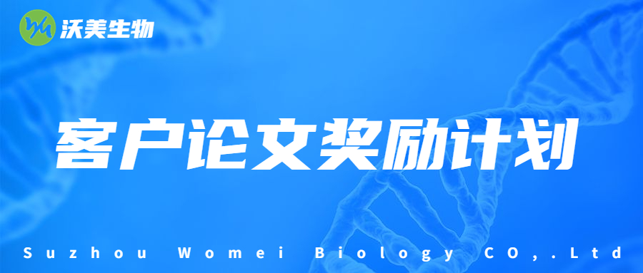 沃美生物自成立以來,致力于為廣大科研用戶提供優質的產品。為了感謝廣大科研工作者一直以來對沃美生物的支持和厚愛,我公司決定對自2022年06月01日之后,對使用我公司產品發表高質量學術文章的科研人員給予獎勵,具體方案如下。一獎勵對象 凡是使用沃美生物產品的所有科研工作者和在校學生,并在文中標明所使用產品的正確名稱以及所屬公司名稱“蘇州沃美生物有限公司”“沃美生物”(或“Suz